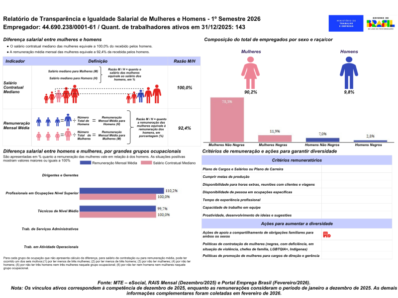 Reafirmamos nosso compromisso com a equidade, a valorização das pessoas e com relações de trabalho cada vez mais justas e transparentes. Acesse nosso Relatório de Transparência e Igualdade Salarial do 1º semestre de 2026 e saiba mais sobre as práticas que adotamos em prol de um ambiente igualitário para toda a nossa equipe.